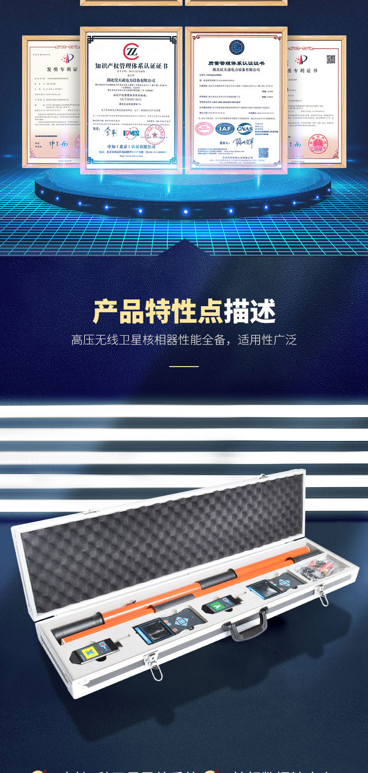 3、測試功能強,空曠地面普通核相距離可達160m,衛(wèi)星授時核相距離大于500km,能對10V~550kV的電壓線路全智能核相,也可用于高壓線路和完全密封的環(huán)網(wǎng)柜低壓感應(yīng)點核相,